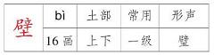 组词: 壁报 壁橱 壁灯 壁虎 壁画 壁垒 壁毯 壁纸造句: 【壁报】这期壁报办得很有特色。 【壁虎】小壁虎喜欢吃昆虫。 【壁画】敦煌莫高窟的壁画举世闻名。 【壁纸】我家卧室的墙上贴了壁纸。