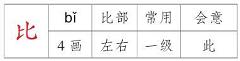 组词: 比方 比分 比划 比较 比例 比如 比赛 比试 比喻 比作造句: 【比较】这篇作文写得比较好。 【比赛】下午我们举行篮球比赛。 【比试】咱俩比试一下,看谁的力气大。 【比喻】这个比喻使用得很恰当。 【比作】我们把儿童比作祖国的花朵。