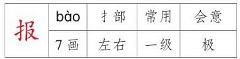 组词: 报仇 报酬 报答 报道 报恩 报复 报告 报考 报名 报社 报应 报纸造句: 【报酬】做这份工作报酬不高。 【报答】我们要报答父母的恩情。 【报道】报纸上的这篇报道不属实。 【报考】今年报考的人比去年多。 【报纸】我家订了好几份报纸。