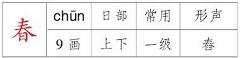 组词: 春播 春分 春风 春耕 春光 春季 春节 春雷 春联 春色 春天 春意 春雨 春运造句: 【春耕】春天到了,农民们忙着春耕。 【春光】三月的南方春光迷人。 【春节】春节是中国最重要的传统节日。 【春雨】这是今年的头一场春雨。 【春运】一年一度的春运又开始了。