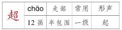 组词: 超标 超产 超车 超出 超额 超过 超市 超越 超重造句: 【超标】河水污染指数严重超标。 【超额】今年我们超额完成了任务。 【超过】他身高已经超过了妈妈。 【超市】学校附近开了一家超市。