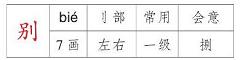 组词: 别称 别处 别的 别管 别看 别离 别人 别说 别提 别致 别字造句: 【别处】我们还是去别处看看吧。 【别人】他根本不想管别人的事。 【别致】这件工艺品设计很别致。 【别字】这篇作文里有很多别字。