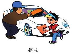 【擦洗】星期天,我帮爸爸擦洗汽车。